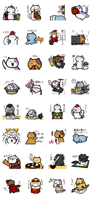 クリスマス、大掃除、受験勉強、忘年会、正月、成人式。ねこらぼの年末年始は大忙し。友達・家族・仕事仲間と使えるスタンプ第三弾。季節モノだけど、普段使い用にも。C&C株式会社 より発売