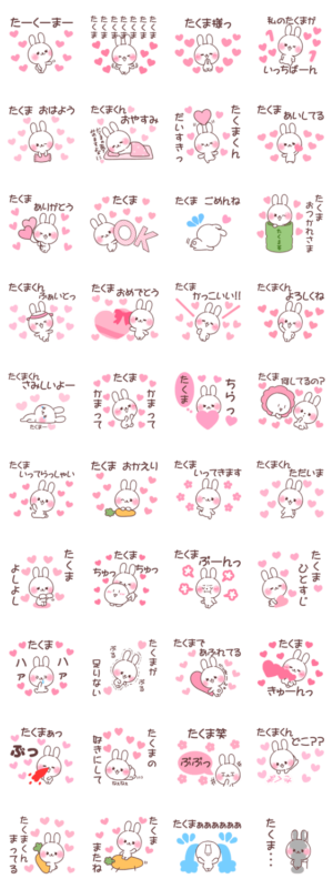 ぽぽんえすのたくまくん/ちゃんへ送るかっわいいゆるーいうさぎ名前あだ名スタンプ♡大好きな愛しの彼氏彼女ラブラブ恋愛カップル友達家族夫婦が使う♡
