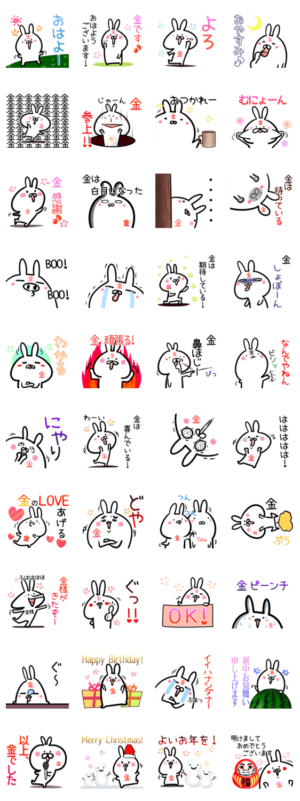 名字(苗字)が金(きん/キン/きむ/キム/こん/コン),金城,金田,金子さん用の可愛いウサギのゆるいなまえ/あだ名スタンプ。暑中お見舞い,クリスマス,正月挨拶入!送ると面白い♪むらびと【名前・アダ名のスタンプ&着せかえ制作】 より発売