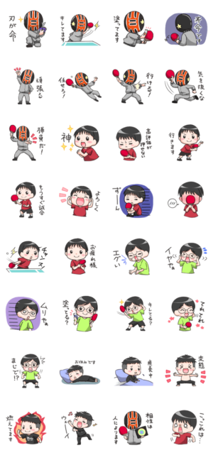 卓球WRM-TV(ワールドラバーマーケット)に登場するぐっちぃ・チャパリータ・がね・やっすんのスタンプです。WRM より発売