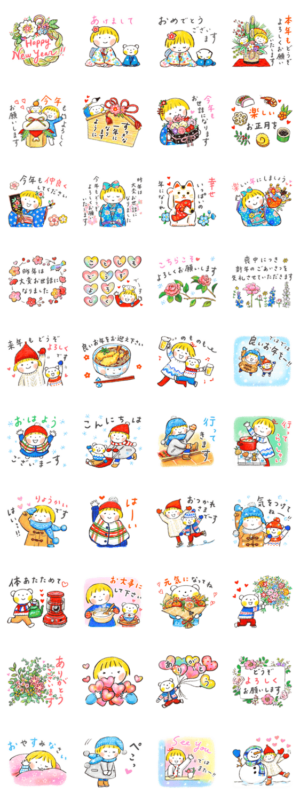 仲良しともだち お正月と冬(改訂版/再販) スタンプ画像一覧
