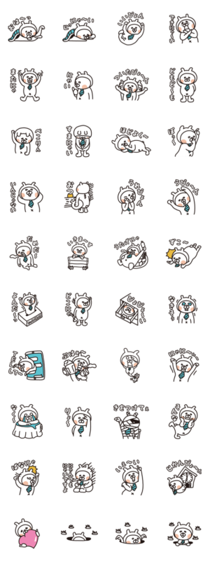 うさぎの着ぐるみを着たねこの「うさねこ先輩」。ゆる〜く、かわい〜く1日まるっと会話に使えるスタンプです。アリス より発売