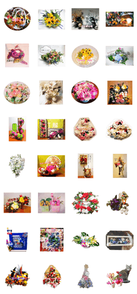球ちゃんがフラワーアレンジメントで作ったお花の写真をスタンプにしました。正月からひなまつりやアロハ系やハロウィンやクリスマス、誕生日、結婚式などに送れます。tamachan.chan より発売