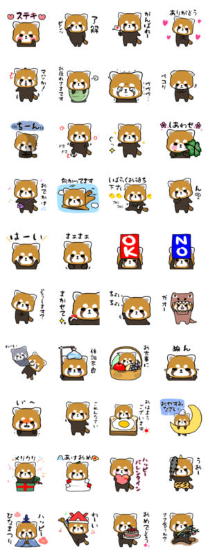 レッサーパンダのスタンプ。普段使えるものやイベントのスタンプ。ありひな より発売