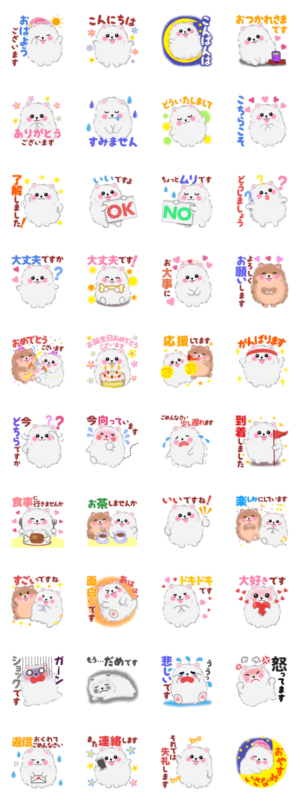 ポメラニアンの「ぽちゃん」スタンプの第2弾です。 年上の方や友達にも使いやすいゆるい敬語を集めてみました