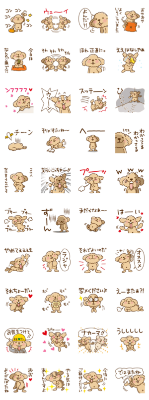 限りなく人間に近いリアクション犬、トイプードルのぷう太郎スタンプの第9弾です。satoco より発売