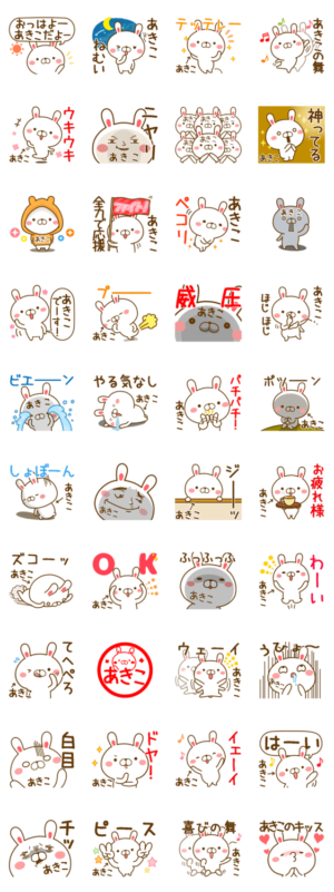 【あきこ/アキコ】が使う名前スタンプ スタンプ情報