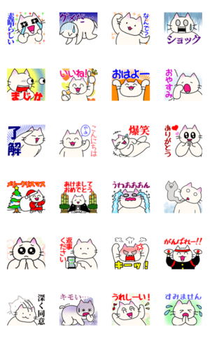 シュールな背景の文字がおどるネコのエフェクトスタンプです。使いやすい日常の挨拶集です。