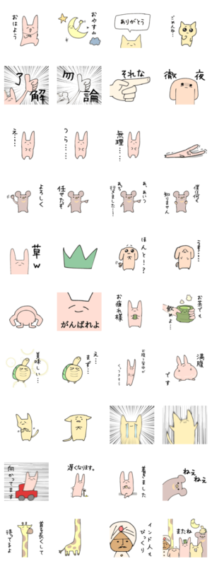 微うざくんの仲間のスタンプです!ウサギ、ネコ、イヌなどなどたくさん登場!