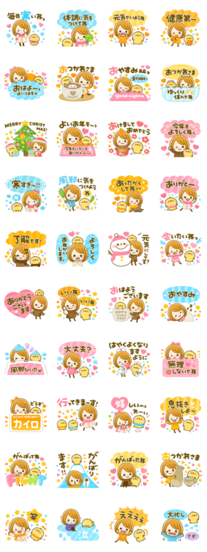 温かい言葉がけができる優しいスタンプです。数が豊富で嬉しいですね。