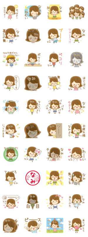 なみちゃんが使うスタンプです。なみえ、みなみ、なみこ、なみか、まなみ、奈美、成実、七未、南美、名美、那美、名波、奈美恵、奈美絵など全国のなみ専用のスタンプです