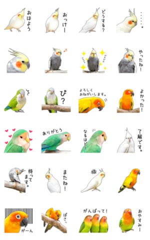オカメインコや、コガネメキシコインコ、ボタンインコなど、カラフルでかわいい鳥たちがメッセージを伝えます。老若男女問わず、毎日使いやすい写真スタンプです!