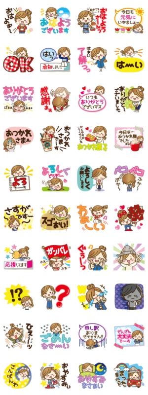 よく使う言葉や挨拶は多めでバリエーションがたくさん!敬語も揃ってるため先輩や上司ママ友にもOK!家族やお友達とのお付き合いにぜひ★☆★!LINE初心者の方にも便利です