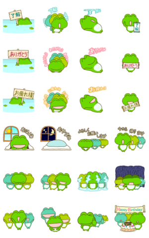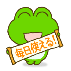 カエルのアニメーションスタンプ。サラリーマン、学生さん、家族に送るよく使うスタンプを集めました。動きが面白いので送られた人もニッコリ。毎日使って楽しんでね。