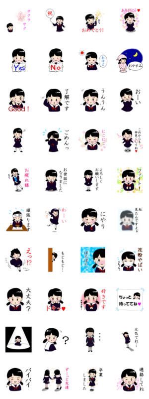 中学生・高校生の女の子にピッタリなスタンプです。春を中心に一年中使えます。