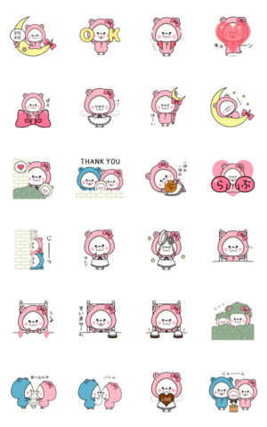 ラブリーで女子力高め☆くまぽこの妹サクラちゃん!かわいくて使いやすいスタンプです。くまぽことちびぽこも登場するよ♪バレンタインにも♡