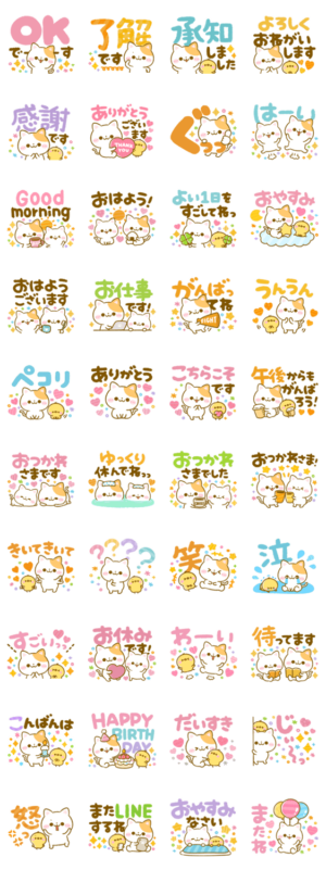 デカ文字♡ねこねこにゃんこ スタンプに書いてある文字一覧