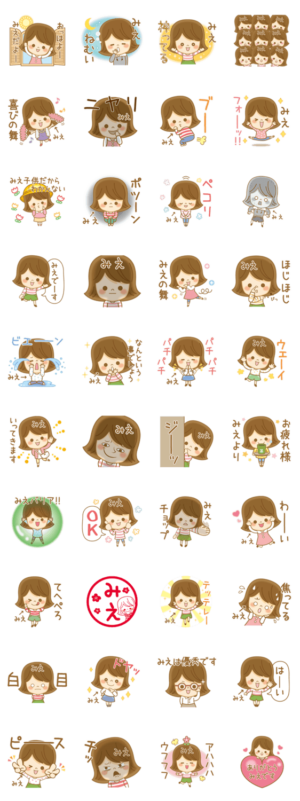 みえちゃんが使うスタンプです。美恵、美枝、三枝、三重、美江、美絵、三恵、実枝、実恵など全国のみえ専用のスタンプです