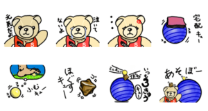 くまの“さぶろうた“と、バランスボールの“キューちゃん“。ゴルフボールの“ミニキュー“。ツボ押しのプロ“イガキュー“の仲良しスタンプです♪