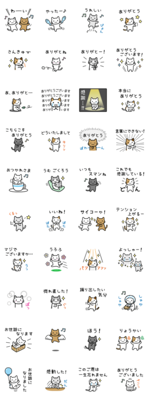 感謝の気持ちでいっぱいのネコたちです。色々な「ありがとう」の想いを伝えましょう。hikida より発売
