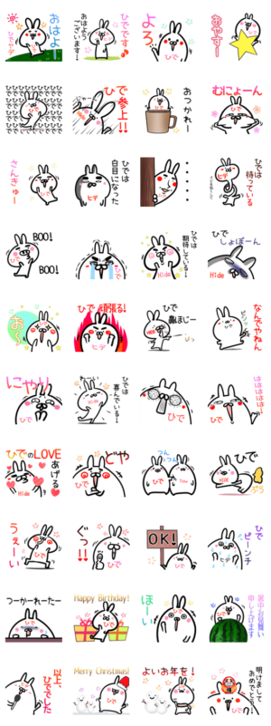 ひでちゃん/ヒデ君用の可愛いウサギのゆるい名前(なまえ)あだ名スタンプ。秀/英/ひでお/ひでよし/ひでこ/ひでかず/ひでき/日出等の名前専用で送ると面白い♪お正月挨拶入♪むらびと【名前・アダ名のスタンプ&着せかえ制作】 より発売
