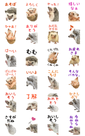 「いきもの大好き!ほほえみフレンズ」より、ハリネズミのBIGスタンプが登場!はりねずみ、小動物、生き物、動物が好きな方は是非!写真「実写」を使ったリアルで日常的な仕様