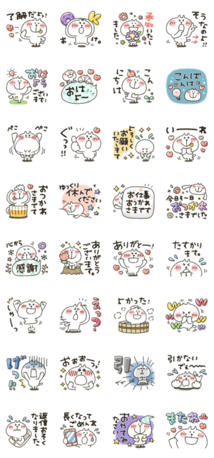 ねこぴ★日常使い スタンプに書いてある文字一覧