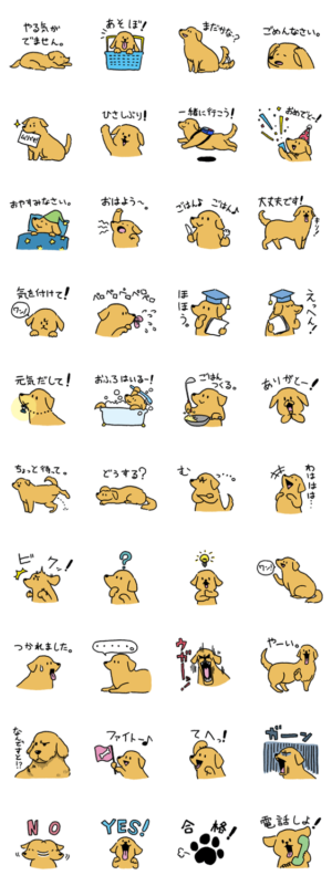 優しい表情が可愛い、誰とでも友達になれちゃいそうなゴールデンのスタンプです♪(スタンプデザイン:みぞぐちともや)