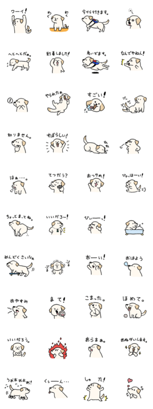 優しい性格で人に喜ばれることが大好き。おちゃめなラブラドール・レトリーバーのスタンプです♪(スタンプデザイン:みぞぐちともや)
