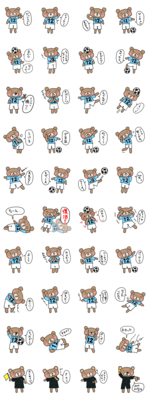 磐田出身の川崎さんというサッカー好きのくまさんのスタンプ。水色ユニフォームのサッカーチームの応援にオススメです。