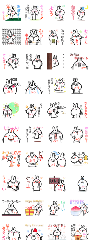 みうちゃん/ミウさん用可愛いウサギのゆるい名前(なまえ)/あだ名スタンプ。美羽/美優/美有/美宇/美海/みうな/みうる/みうか/みうみ等の名前専用で送ると面白い♪正月挨拶入むらびと【名前・アダ名のスタンプ&着せかえ制作】 より発売