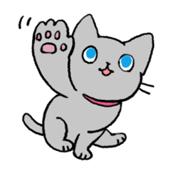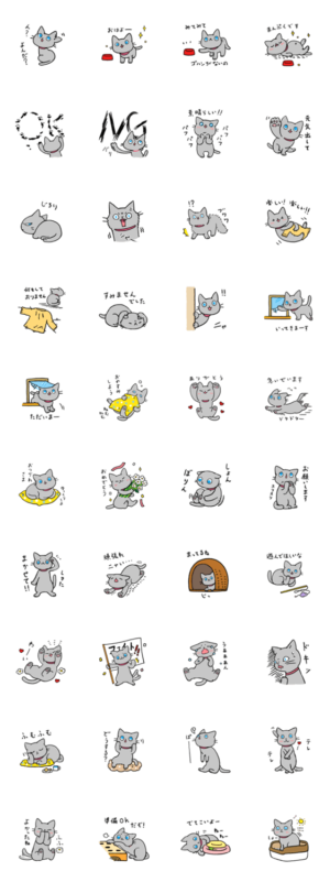 可愛いしぐさで見る人を元気にしてくれるグレーな猫スタンプです♪(スタンプデザイン:仁子)