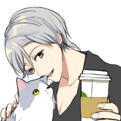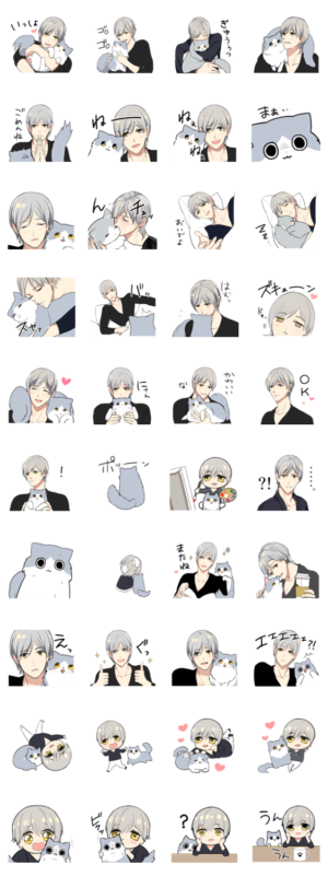 ねこのきもち『ねこと僕』スタンプです!ふかふかもふもふな猫ちゃんと美男子のスタンプです♪(スタンプデザイン:緒山千)