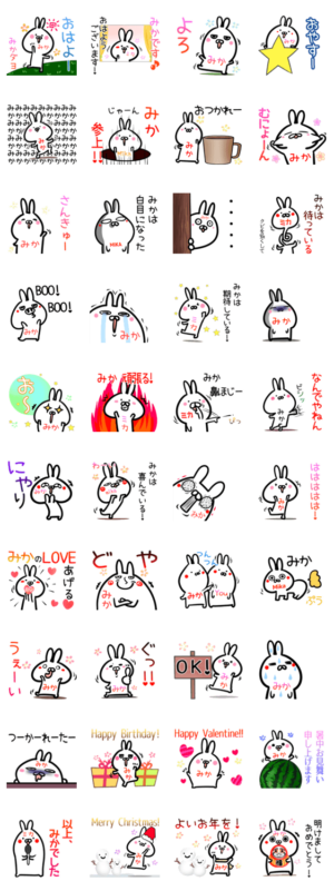 みかちゃん/ミカさん用の可愛いウサギのゆるい名前(なまえ)/あだ名スタンプ。美香/美佳/美加/三佳/美歌/みかど/みかげ/みかこ/みかさ/みかん等の名前専用で送ると面白い♪むらびと【名前・アダ名のスタンプ&着せかえ制作】 より発売