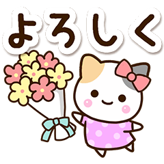 ワンピースを着てリボンをつけた、かわいい三毛猫です。ネコ好きな方にぜひ。【かたこ】かたこ より発売