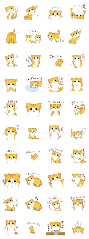 くりくりの目と短い足、まるまるした姿が可愛いマンチカンのスタンプです♪(スタンプデザイン:緒山千)ねこのきもち いぬのきもち より発売