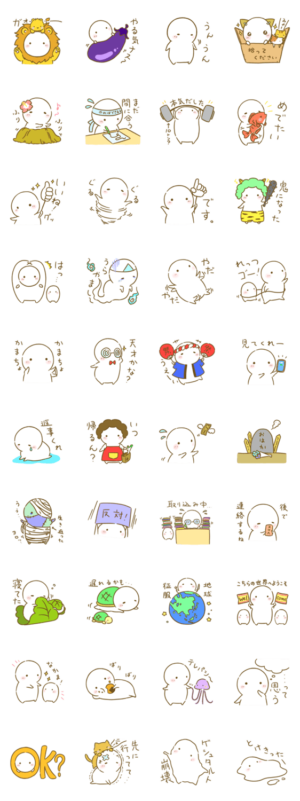 白くて丸いもち肌のいきもの。 「しろまる。のゆるいスタンプ」第3弾です。しろまる。の隣にときどき現れる小さないきものはちびまる。きゃみ より発売