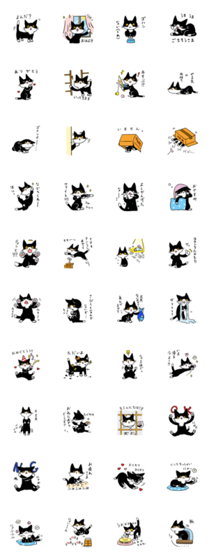 MIX猫 黒×白【ねこのきもち】 スタンプ画像一覧