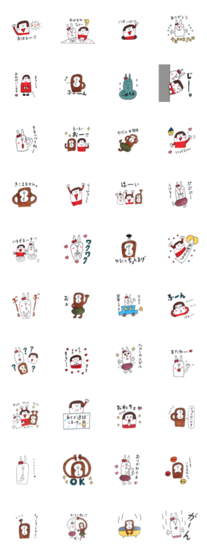 さおちゃんと仲間たち(ウサウサとサルル)が、みんなをゆる〜く楽しい気持ちにしてくれるスタンプです。sao より発売