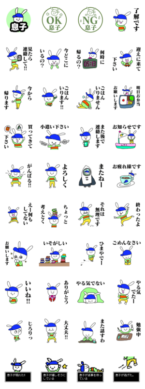 子供、息子、男の子、専用です。お父さんやお母さん(親)や、送ろうと思えば誰にでも送れるスタンプです。プレゼントにもどうぞ。こども、コドモ。便利で使える言葉があり。
