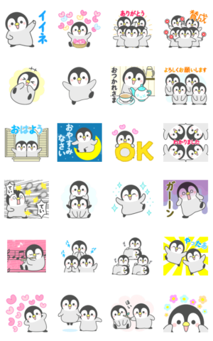 ペンギンのペンペンのポップアップスタンプです。毎日使う定番挨拶やよく使う日常会話が入ってます。