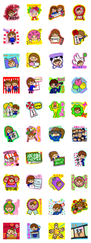 卒業入学、応援、打ち上げ、お祝いで使えるスタンプです。青春ぽいものや、桜や鯛の着ぐるみ系かわいいを揃えてます。ぐっとくる季節に一緒に感動スタンプをどうぞ!Hyper bambi より発売