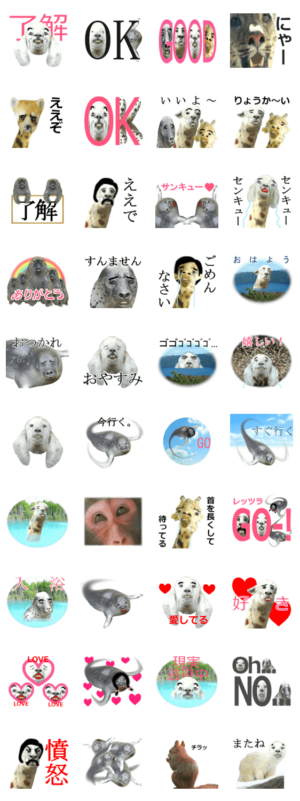 実写(写真)の画像を加工した動物達の日常で意外と使えるキモイスタンプです。TROCK より発売