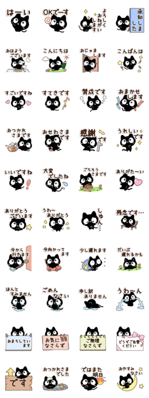 デフォルメされたくろねこのスタンプです。かわいいスタンプをラインに飾って癒されましょう。