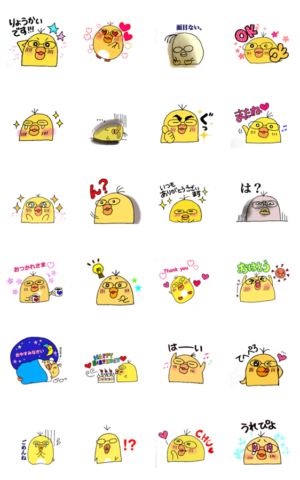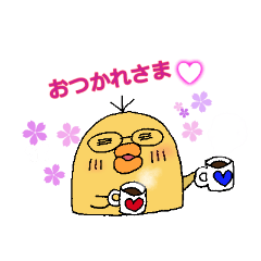 ポニョポニョしている黄色いペンギン。お気に入りのメガネとたらこくちびるがチャームポイントの飛べないトリ。すっぴんの誰かさんに似ている…そんな癒し系スタンプです。mocomocoyacco より発売