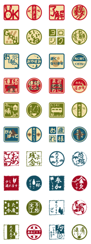 男女問わず、大人が使えるシンプルな一言スタンプ。文字を打つのが苦手な人も伝えたい要件がスタンプ1つで簡単に。