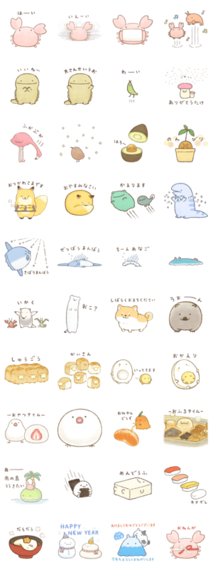 いきものなんでも詰め合わせました。 新年のあいさつに使えるスタンプもちょこっと。よこみぞゆり より発売