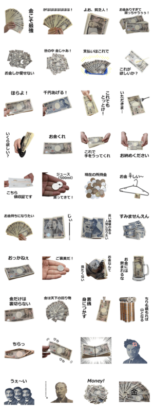 大好評のお金のスタンプ第二弾です。現金なあなたにぴったり!?マネー最高!40個入り。お年玉、お正月にも使えるスタンプです。竹野チコ より発売