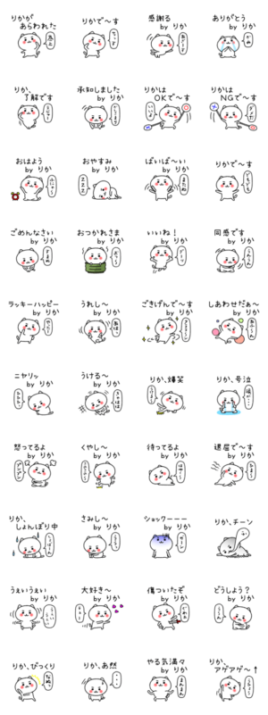 里香、梨花、理香、利香、梨華、梨香…、全国の「リカ」さん専用の猫キャラ名前スタンプ、日常会話の基本セットです。友だちとお揃いで使える「ちゃんねこシリーズ」です。cosotto より発売