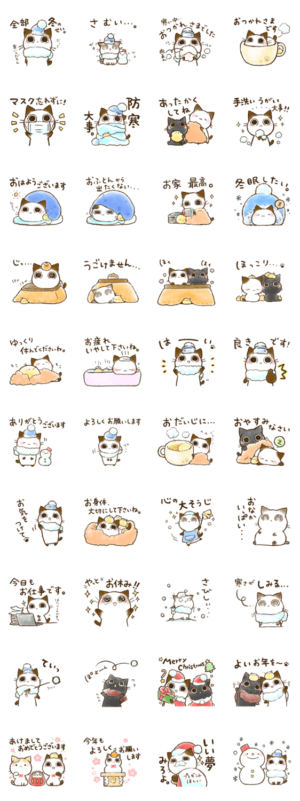 とても愛らしくて微笑ましいスタンプです。寒くなってきた時期にピッタリなフレーズがたくさんあるのが嬉しいですね。